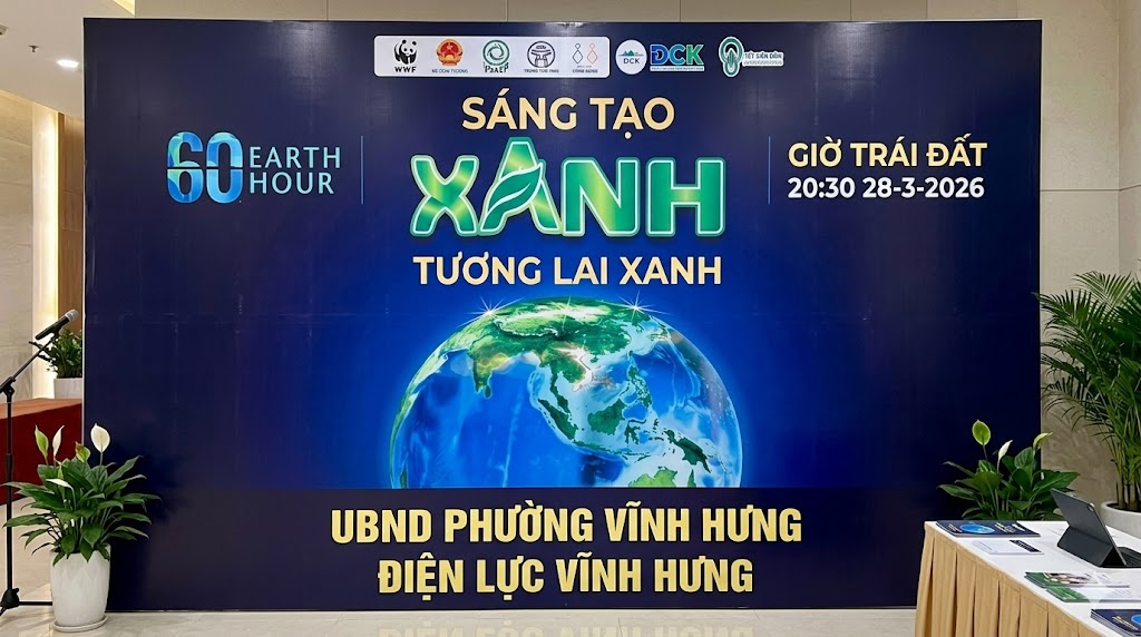 Giờ Trái đất năm 2026 diễn ra vào lúc 20h30-21h30 ngày 28/3/2026 với thông điệp "Sáng tạo xanh - Tương lai xanh" - Một sự kiện toàn cầu nhằm nâng cao nhận thức cộng đồng về tiết kiệm năng lượng và bảo vệ môi trường.